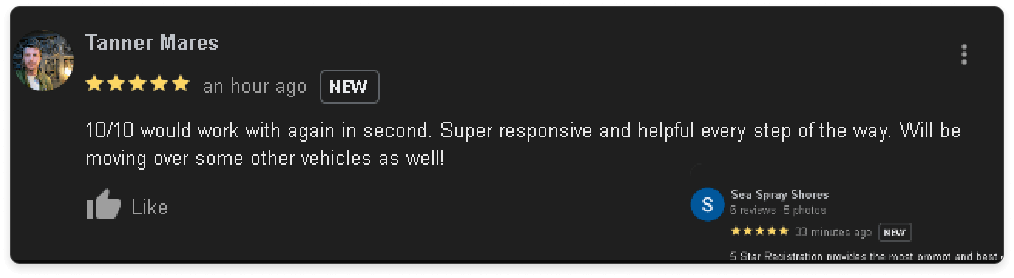When Sarah had questions about interstate travel and insurance, she received direct answers from our legal team and partnered registered insurance agents. She now enjoys her vehicle with complete peace of mind, knowing that every aspect of her ownership is legally sound.