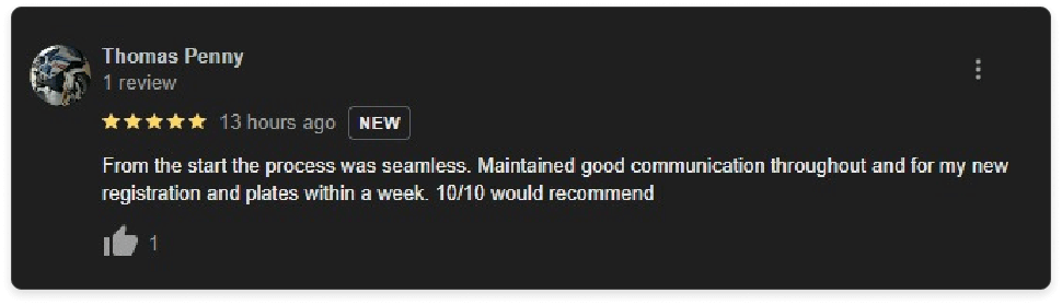 We have successfully registered thousands of vehicles whether they're financed, or not. We do always involve your finance company, from a legal perspective, when assisting with vehicles under finance agreements.